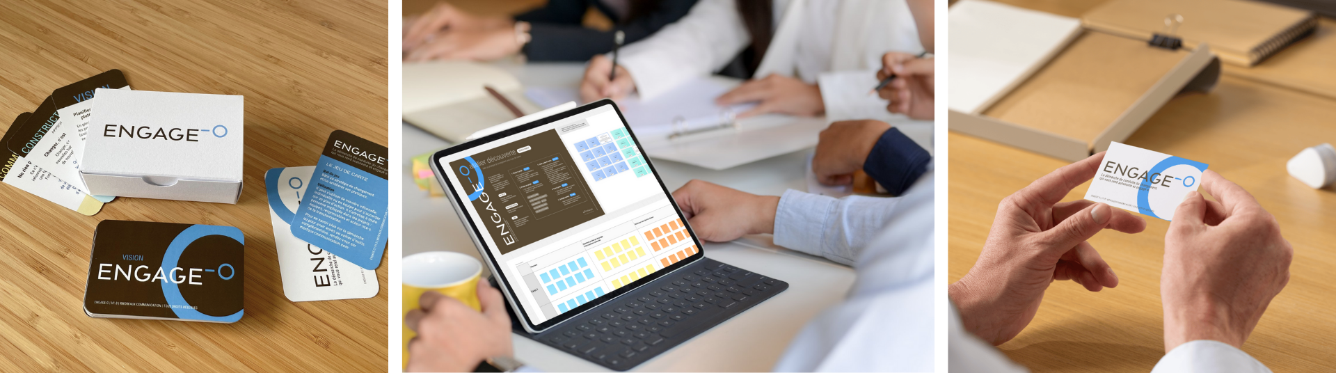 L'atelier ENGAGE-O permet de guider les équipes dans leur réflexion et le démarrage de leur stratégie de changement. Il peut être réalisé en virtuel ou en présentiel selon vos besoins, autant dans un contexte intra-entreprise qu'inter-entreprise.