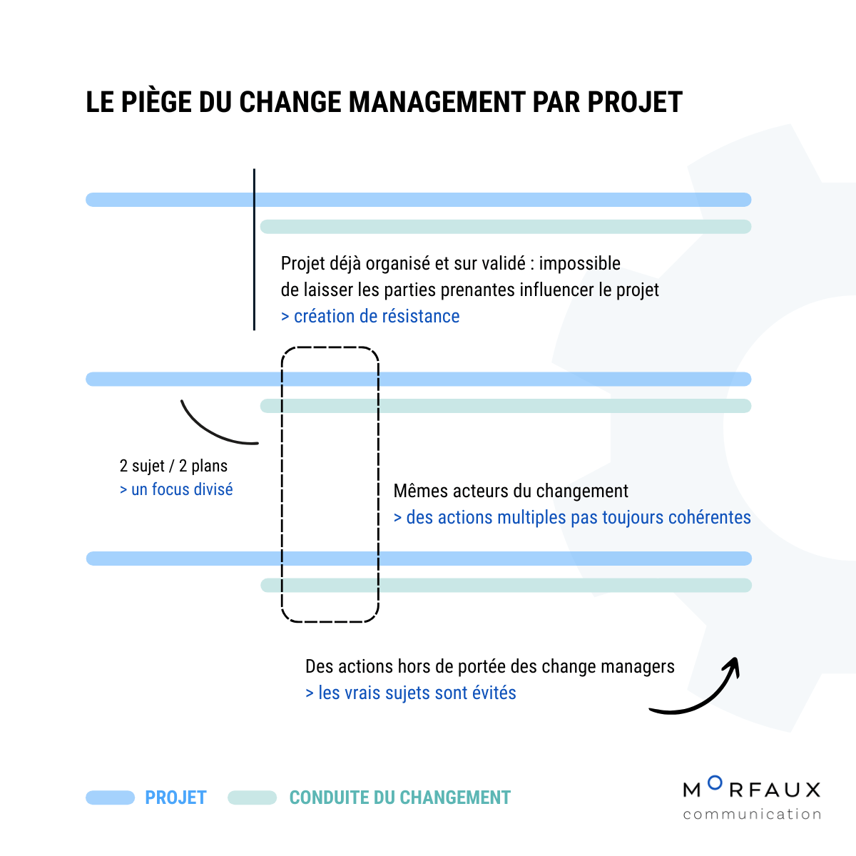 La conduite du changement se fait quasiment tout le temps en mode projet (il n’y a qu’à voir les descriptifs de postes), ce qui a pour effet de nous plonger dans un système bloqué :